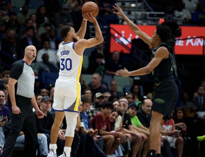 本場(chǎng)比賽穆迪上來(lái)就火力全開(kāi),首節(jié)就飆進(jìn)7記三分,直接刷新個(gè)人單場(chǎng)命中新高,同時(shí)也在期待著他能夠創(chuàng)造紀(jì)錄??稍谥笥率窟M(jìn)攻陷入低迷,穆迪也未能延續(xù)勢(shì)頭,其中勇士首節(jié)轟下44分,第二節(jié)和第三節(jié)合計(jì)拿到41分,好在鵜鶘這邊進(jìn)攻十分糟糕,完全跟不上節(jié)奏,隨著末節(jié)勇士找回手感,將分差拉開(kāi),比賽也早早失去懸念,勇士取得了一場(chǎng)18分大勝。