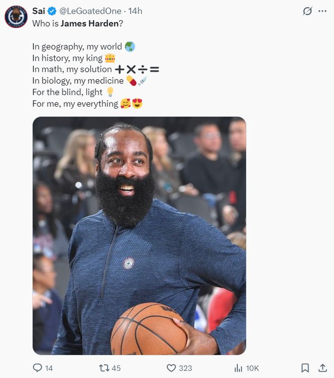 本賽季的哈登場(chǎng)均26分6.3籃板9助攻,命中率46%,三分命中率40%,罰球命中率91%,真實(shí)命中率64.65%,美媒:人們不是應(yīng)該討論他超長(zhǎng)的巔峰期嗎?
